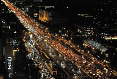 2010年9月20日,距离中秋节还有两天。当晚6时50分,长安街,双向车辆行驶缓慢,尤其自东向西车辆几乎停滞不动,很多司机下车散起步来。记者 陈杰 摄